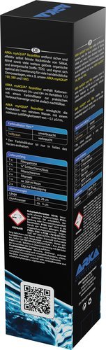 ARKA myAQUA® Resinfilter enthält Kationen- und Anionenharz (H+ und OH- im Verhältnis 1:1) mit einem Farbindikator zur praktischen Verbrauchsanzeige und ist einfach nachfüllbar.