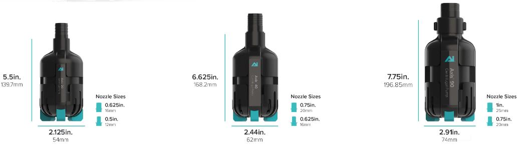 | Empfohlene Aquariengröße | Bis zu ≈ 56 Liter | Bis zu ≈ 151 Liter | Bis zu ≈ 340 Liter |