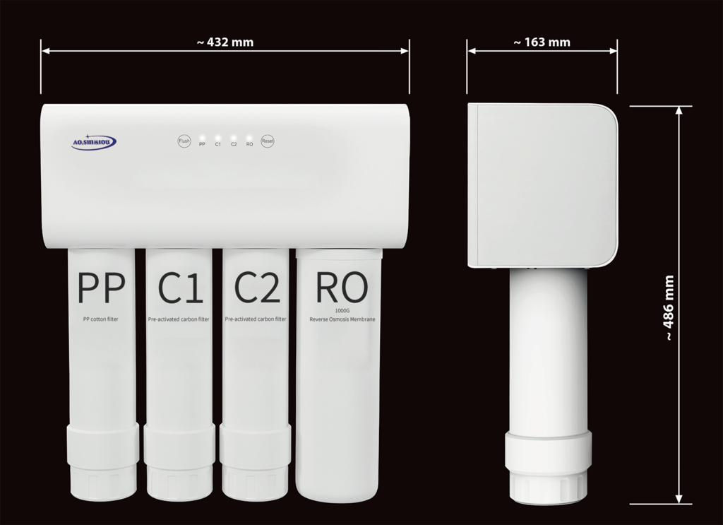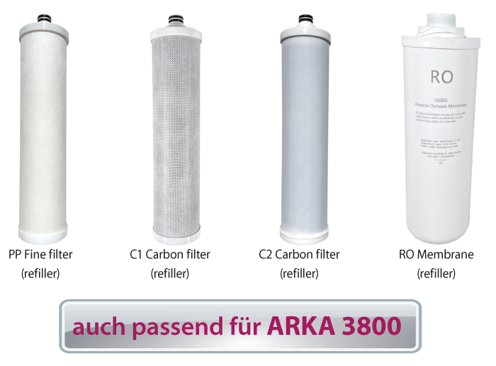 RO Membran: Filtert Schadstoffe, Salze, Schwermetalle, Pestizide und Bakterien aus dem Wasser.