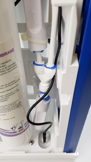 Für maximale Sicherheit, wurde das GLAMORCA Umkehrosmose-System mit einem Wasserleck-Sensor ausgestattet. Wenn ein Leck festgestellt wird, ertönt ein Alarm und die Umkehrosmoseanlage stellt den Betrieb ein.