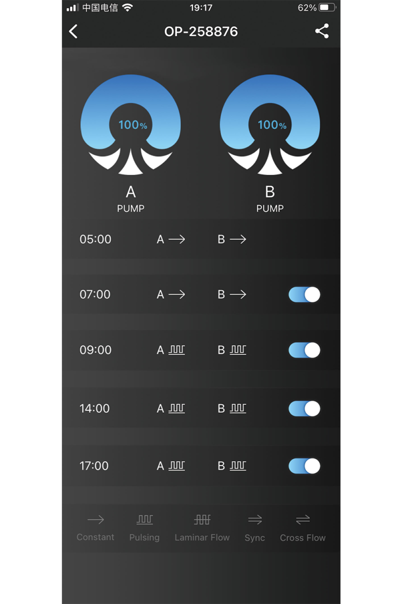 Unser neuer WLAN-Controller kann jetzt *Zwei Wellenpumpen gleichzeitig und Einstellungen zwischen diesen beiden Wellenpumpen einfach über unsere maßgeschneiderten OCTO APP für IOS- oder Android-Geräte antreiben.