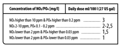 Es wird empfohlen, die NO3- und PO4-Konzentration ein- oder zweimal pro Woche zu überwachen.