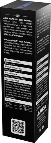 ARKA myAQUA® 3800 Feinfilter entfernt sicher und effektiv Schwebstoffe, wie z. B. Rost, Sandpartikel und viele weitere Verschmutzungen und eignet sich optimal zur Verwendung für unsere ARKA myAQUA® 3800.