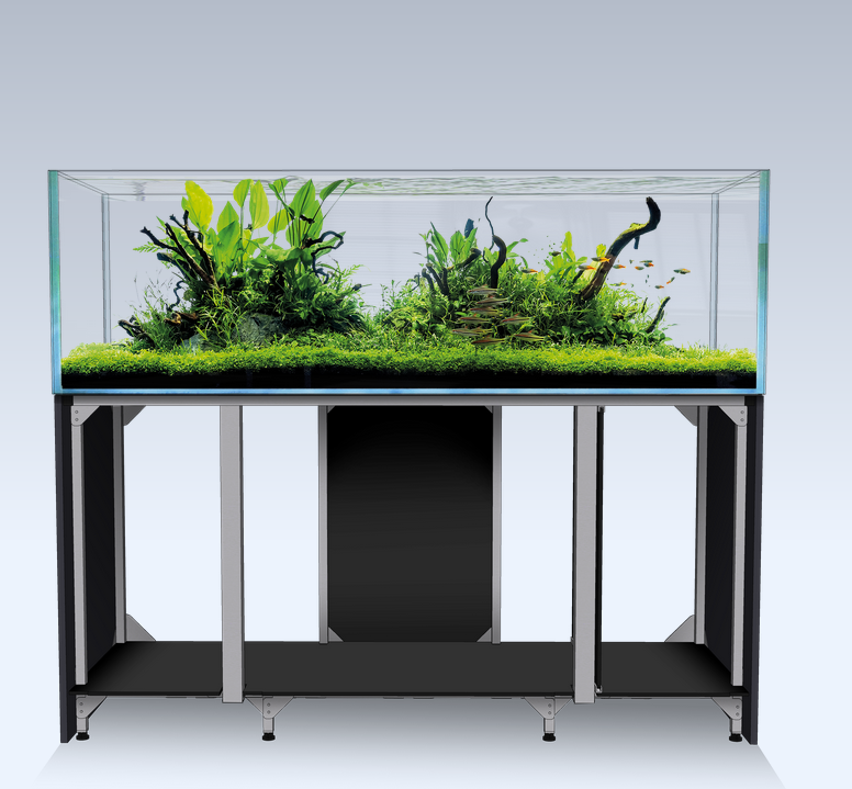 Größere Aquarien bringen mehr Gewicht mit sich, daher sind die 1500mm und 1800mm Schränke standardmäßig mit einem integrierten Metallrahmen (AquaFrame) ausgestattet. Für das 1200mm-Modell gibt es eine Option für einen Metallrahmen.