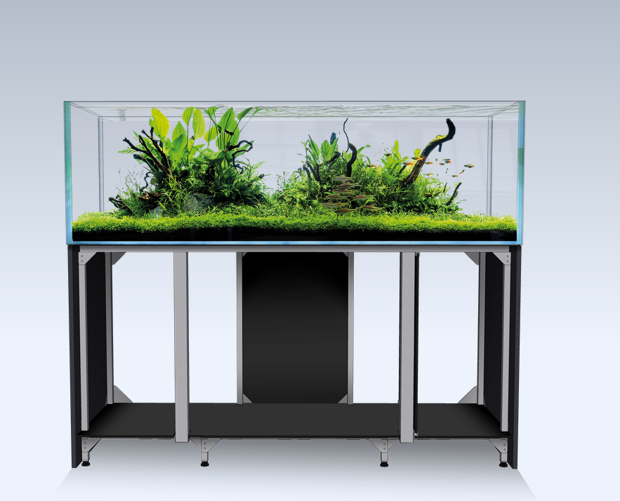Größere Aquarien bringen mehr Gewicht mit sich, daher sind die 1500mm und 1800mm Schränke standardmäßig mit einem integrierten Metallrahmen (AquaFrame) ausgestattet. Für das 1200mm-Modell gibt es eine Option für einen Metallrahmen.
