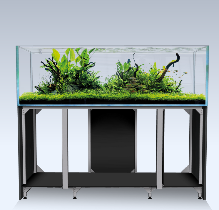 Größere Aquarien bringen mehr Gewicht mit sich, daher sind die 1500mm und 1800mm Schränke standardmäßig mit einem integrierten Metallrahmen (AquaFrame) ausgestattet. Für das 1200mm-Modell gibt es eine Option für einen Metallrahmen.
