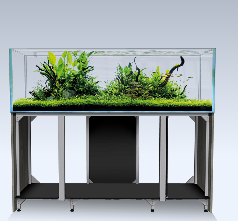 Größere Aquarien bringen mehr Gewicht mit sich, daher sind die 1500mm und 1800mm Schränke standardmäßig mit einem integrierten Metallrahmen (AquaFrame) ausgestattet. Für das 1200mm-Modell gibt es eine Option für einen Metallrahmen.