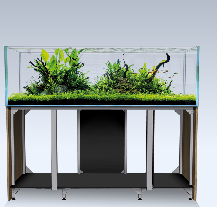 Größere Aquarien bringen mehr Gewicht mit sich, daher sind die 1500mm und 1800mm Schränke standardmäßig mit einem integrierten Metallrahmen (AquaFrame) ausgestattet. Für das 1200mm-Modell gibt es eine Option für einen Metallrahmen.