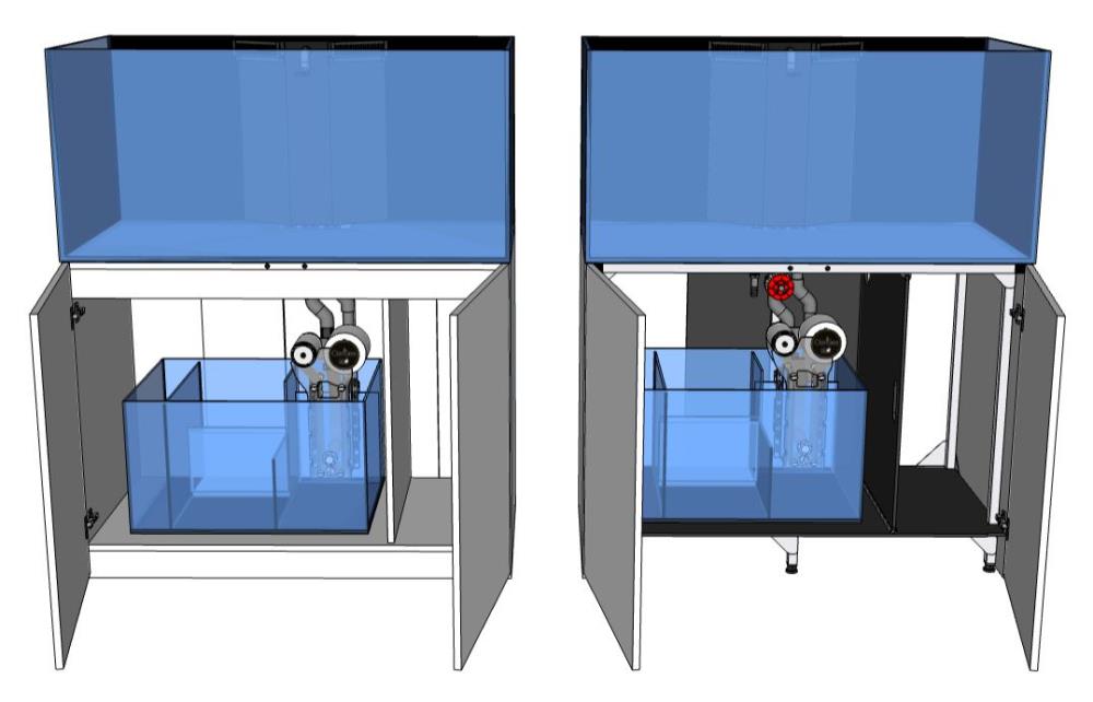 Anpassung: Wassertiefe kann individuell z. B. für Refugium oder Abschäumer angepasst werden