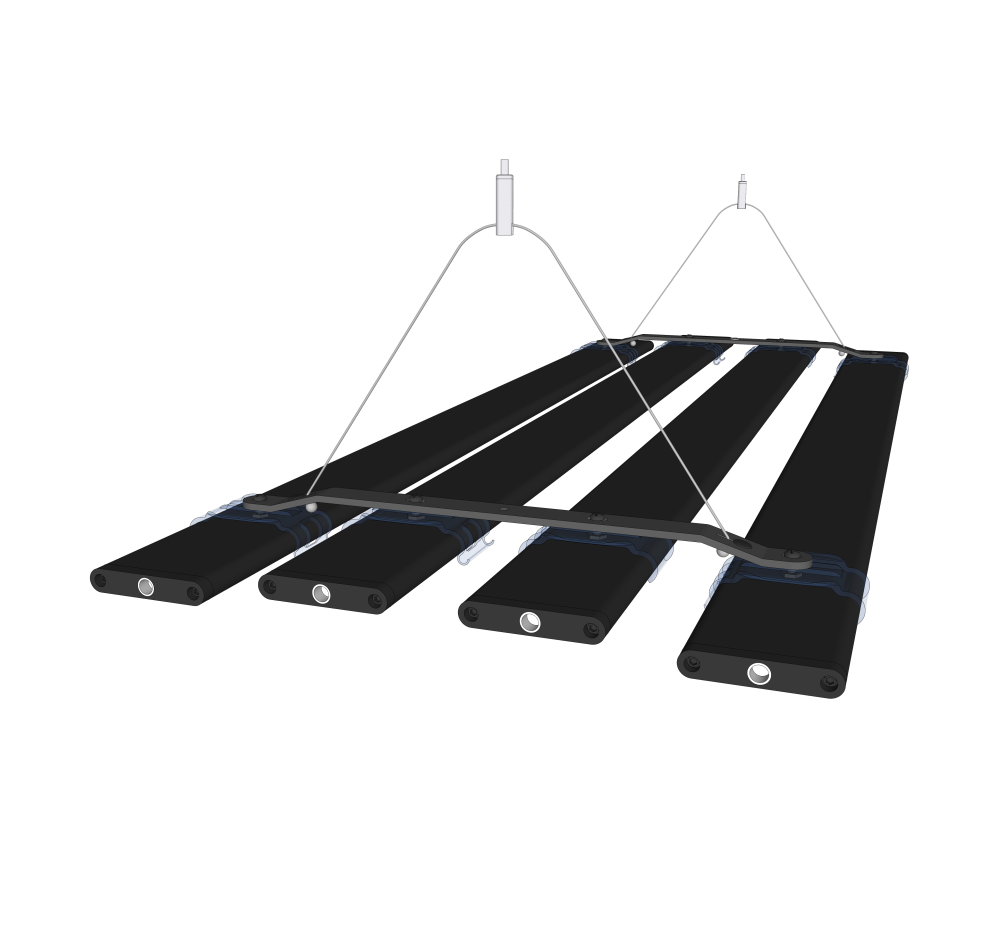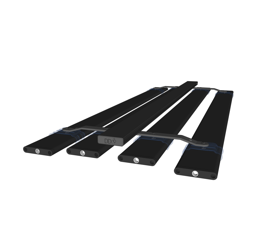 - Montieren Sie 2, 3 oder 4 AI Blade LED Leuchten auf der D-D OTM Schiene.