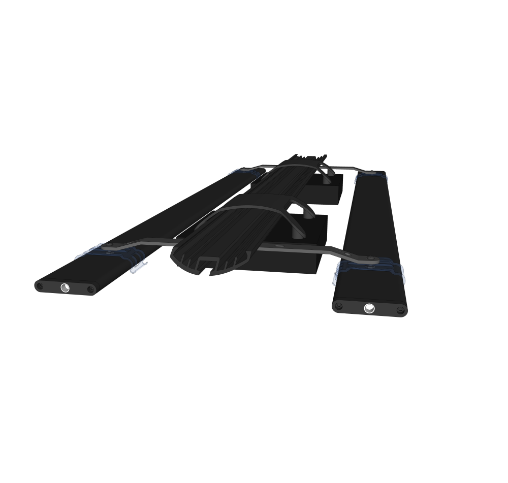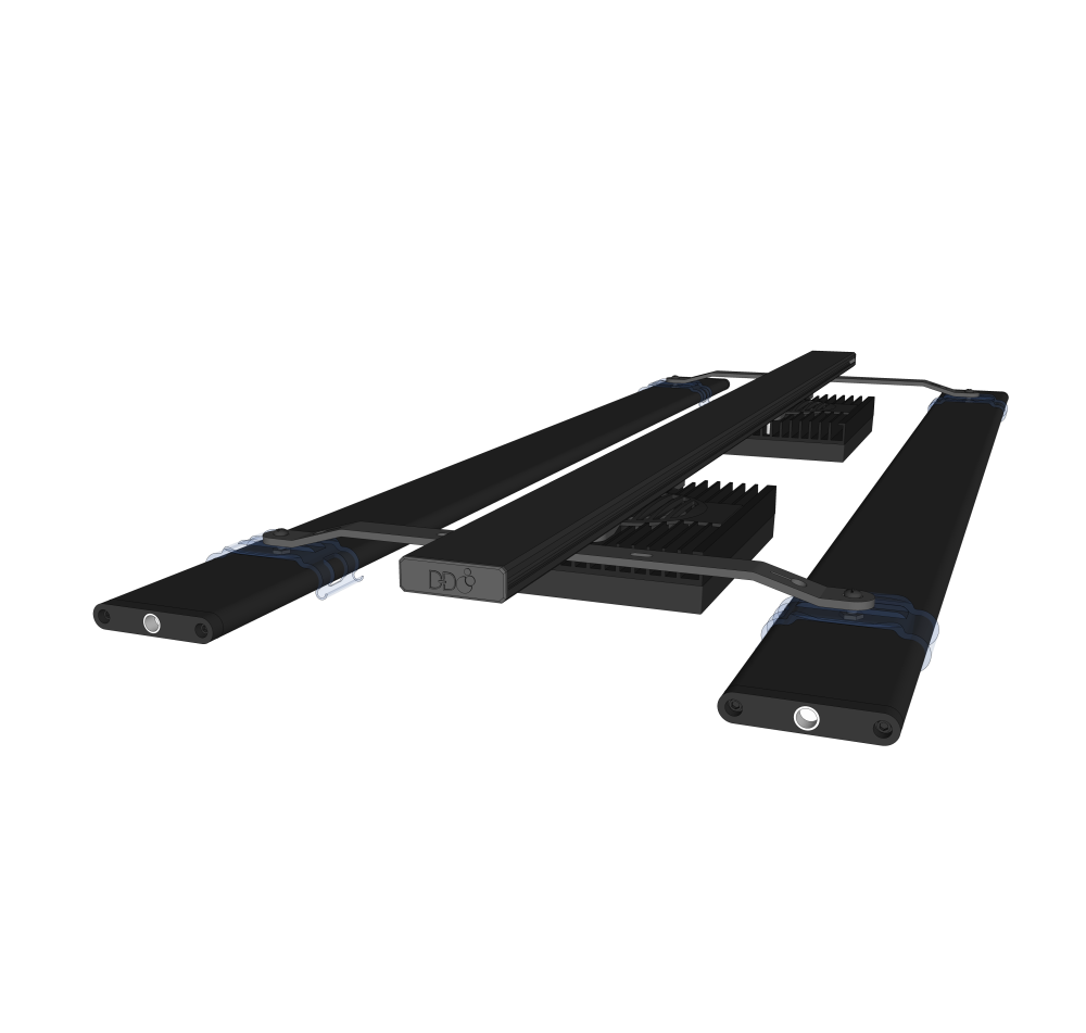 - Hybrid-Montage von 2 x AI Blade LED Lichtern zusammen mit AI Hydra 26/32/52/64 LED Lichtern auf der D-D OTM Schiene.