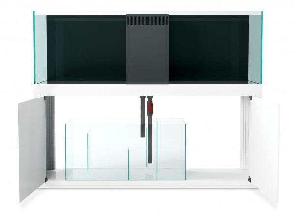 Die Aquarienrückwände dieser Aquariensysteme sind schwarz laminiert, der Filterschacht sitzt mittig und das Aquarium ist ein Poolaquarium ohne Streben. Das Herzstück bildet ein extrem stabiles Aluminiumgestell, welches speziell legiert und pulverbeschichtet wird. Absolut Verwindungssteif und Meerwasserresitent.