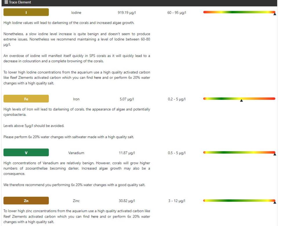 Unser fortschrittlicher ICP-Test, der sowohl Salzwasser als auch RODI abdeckt, liefert eine beeindruckende Palette von über 90 Messungen. Von wichtigen Parametern wie Alkalinität, pH-Wert und Salzgehalt bis hin zu Makro- und Spurenelementen wie Chlorid (Cl), Natrium (Na), Calcium (Ca), Magnesium (Mg), Kalium (K), Strontium (Sr), Bor (B), Brom (Br), Schwefel (S), Lithium (Li), Silizium (Si), Jod (I), Beryllium (Be), Barium (Ba), Molybdän (Mo), Titan (Ti), Vanadium (V), Chrom (Cr), Mangan (Mn), Eisen (Fe), Kobalt (Co), Nickel (Ni), Kupfer (Cu), Zink (Zn), Phosphor (P), Phosphat (PO4) und mehr, wir lassen keinen Aspekt der Chemie Ihres Aquariums unerforscht.