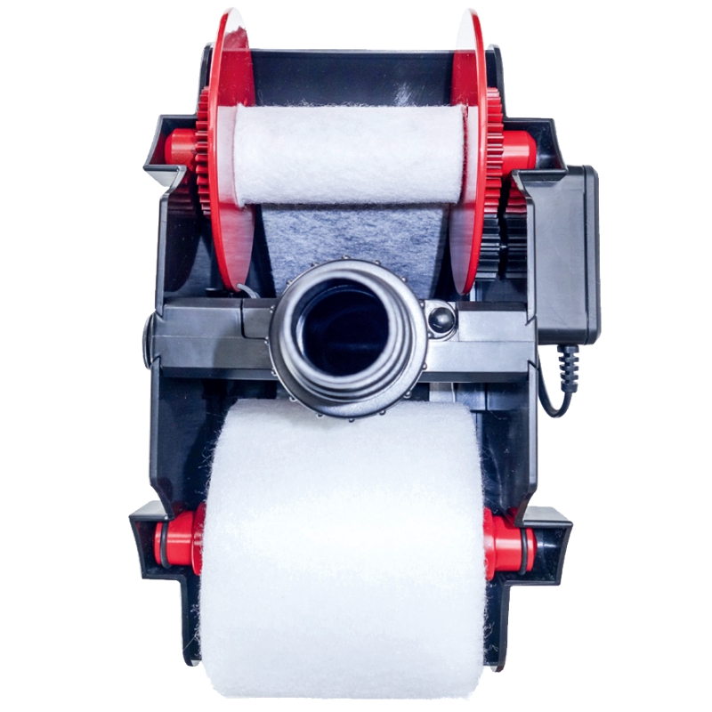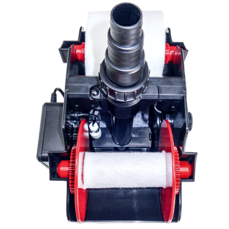 Dort schaltet ein Schwimmerschalter den Getriebemotor, welcher die Vliesrolle dreht und den Vlies weiter transportiert. Abhängig vom Schmutzanfall im Aquarium hält eine Vliesrolle 3–6 Monate. Ist sie verschmutzt, muss sie durch eine neue ersetzt werden. Das Vlies ist sehr fein. Auch kleinste Partikel werden zurückgehalten. Der Schmutz wird aus dem System entfernt, bevor er biologisch abgebaut wird. Das entlastet den Biofilter und den Abschäumer im Meerwasseraquarium.