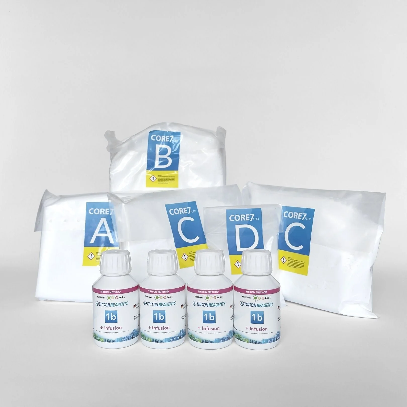 TRITON CORE 7 Reef Supplements Flex ist die nächste Generation der Dosierlösungen zur Ergänzung und Aufrechterhaltung naturnaher Meerwasserparameter für Riffaquarien, abgestimmt auf die Anwendung der TRITON-Methode.